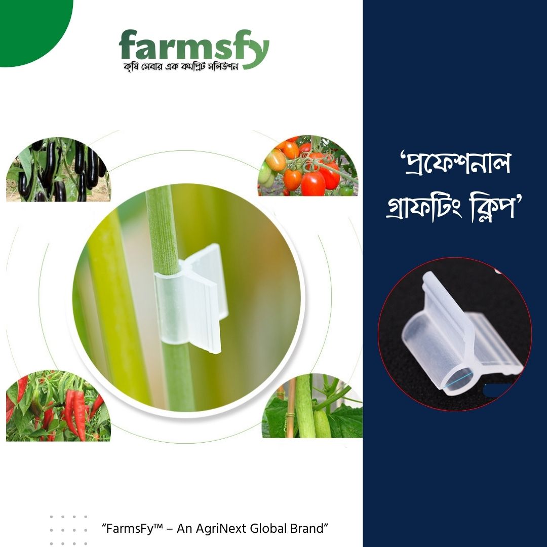 কিন্তু সনাতন পদ্ধতিতে সুতা বা পলিথিন দিয়ে বাঁধতে অনেক সময় নষ্ট হয় এবং চারার ক্ষতি হওয়ার ঝুঁকি থাকে। তাই FarmsFy নিয়ে এসেছে উন্নতমানের প্লাস্টিক গ্রাফটিং ক্লিপ (Grafting Clips), যা আপনার গ্রাফটিং প্রক্রিয়াকে করবে দ্রুত, সহজ এবং শতভাগ সফল।